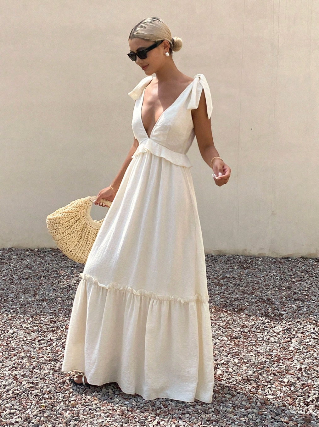 Introducing the cornerstone of your vacation wardrobe. Our latest maxi dress is a masterclass in effortless summer style, combining a floor-sweeping silhouette with the delicate touch of ultra-fine straps.